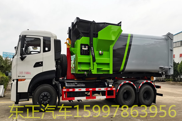 可卸垃圾車帶自卸功能,液壓操作,方便傾倒。該車的箱體部分完全由液壓系統(tǒng)來(lái)控制,在平日里可將車載垃圾箱放置到各個(gè)垃圾收集站,待垃圾收集滿后,該車可直接開(kāi)赴至垃圾站,通過(guò)液壓系統(tǒng)的操控,可將垃圾車后座上加裝的勾臂放下,掛住站內(nèi)垃圾箱前端的連接點(diǎn),將垃圾箱拉至車體的后座上,此時(shí)即可啟動(dòng)車輛,將垃圾運(yùn)送至垃圾處理站內(nèi),進(jìn)行自卸式傾倒。該車最主要的優(yōu)點(diǎn)就是可一車配多斗,一輛車就可以維持?jǐn)?shù)個(gè)垃圾收集站的運(yùn)轉(zhuǎn),效率高,且箱體為密封式設(shè)計(jì),不會(huì)造成二次污染。