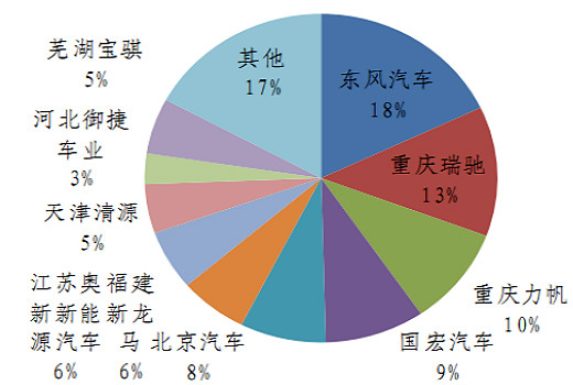 2015 年純電動(dòng)專用車各車企市場(chǎng)占有率