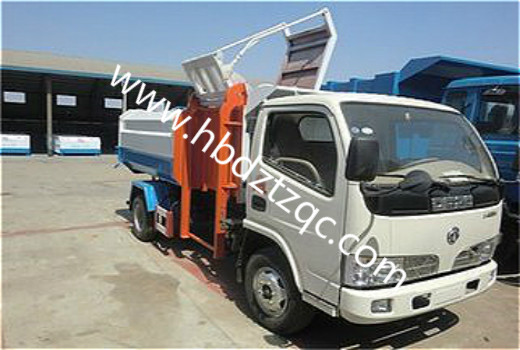 (5)、掛桶式垃圾車專用功能: 該車采用鏈條和液壓油缸聯(lián)動裝置,實現(xiàn)對垃圾斗提升和翻轉(zhuǎn),將多處垃圾斗內(nèi)的垃圾自動收入車廂,并到目的地一次性自卸出來。具有全密封,自裝自卸功能,液壓操作。適用于全國通用標準的垃圾桶:鐵桶、塑料桶,并大量供應(yīng)垃圾掛桶。