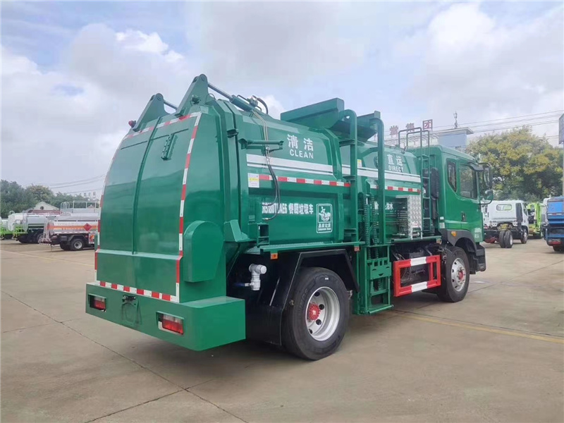 方罐式餐廚垃圾車:弧形廂體,箱體內(nèi)可實(shí)現(xiàn)固液分離,推鏟卸料,后蓋液壓開(kāi)啟/鎖緊(帶耐磨橡膠密封條密封-后門關(guān)閉后滴水不漏),后門液壓鎖緊防誤操作功能,掛桶式提升機(jī),可配合120升、240升標(biāo)準(zhǔn)垃圾桶使用,清洗裝置(帶水箱、液壓馬達(dá)帶動(dòng)高壓泵)。